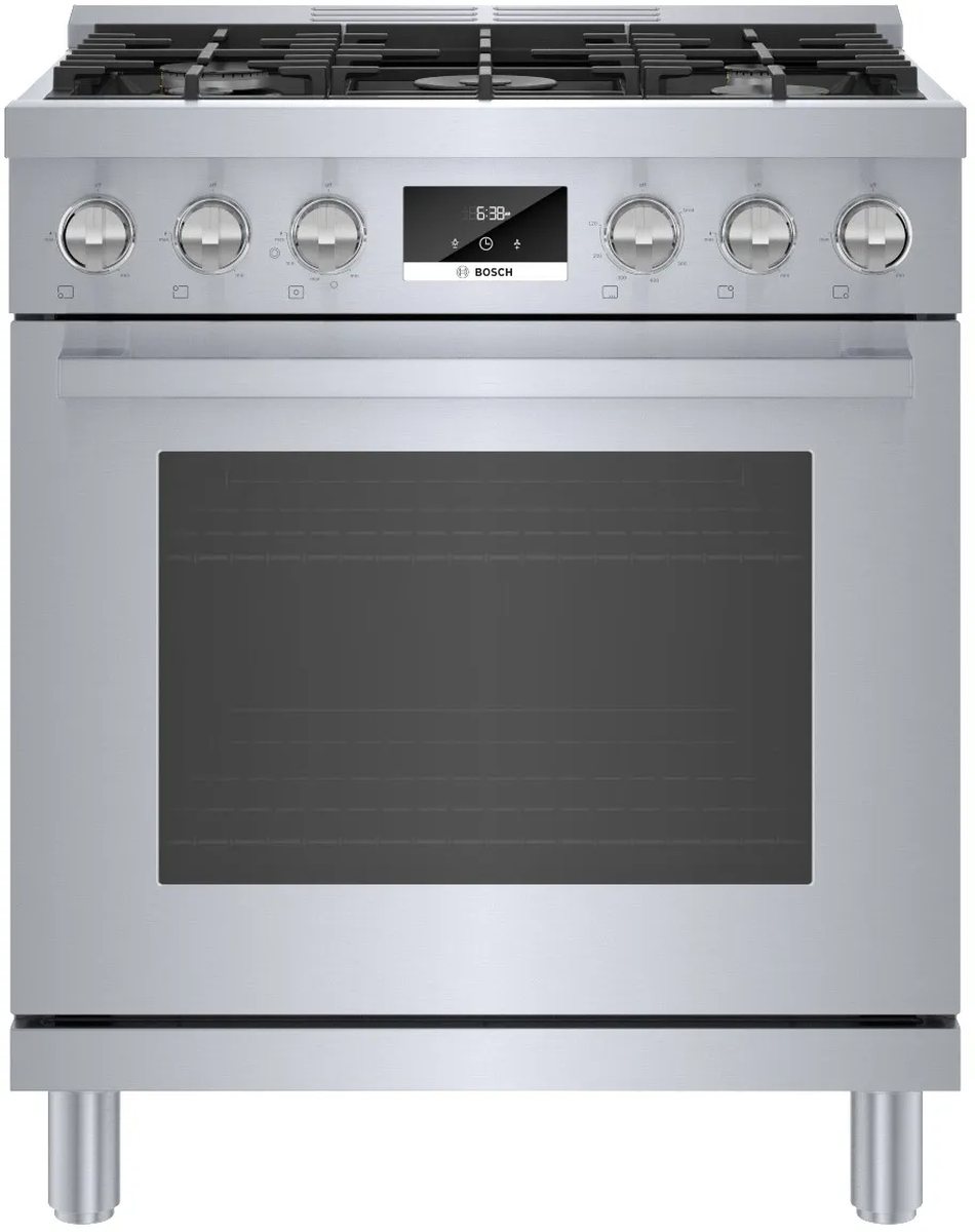 This range is the first 30" Bosch Industrial Style Range with double ring burner and made with heavy-duty metal knobs for a premium look and feel.Read More
