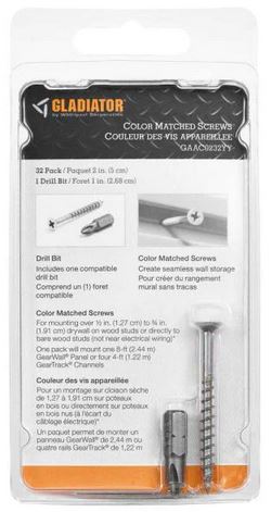 Install your Gladiator® GearWall® Panels and GearTrack® Channels with colour Matched Screws to create seamless wall storage. Screw heads match Gladiator® wall systems for a more finished look, and screws mount directly to bare wood studs or drywall over wood studs. One pack contains enough screws to mount one 8-foot GearWall® Panel or four 4-foot GearTrack® Channels.Read More