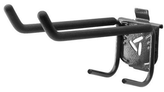 Storage for long handled garden tools, sports equipment, and other gear can be neatly organized and off the floor with the Gladiator® Tool Hook. This storage hook can hold up to 25 lbs (11.3 kg) and is easily relocated onto different Gladiator® Wall Systems. Vinyl tip padding prevents your items from being scratched or dented while lock tabs keep this hook secured to the wall.