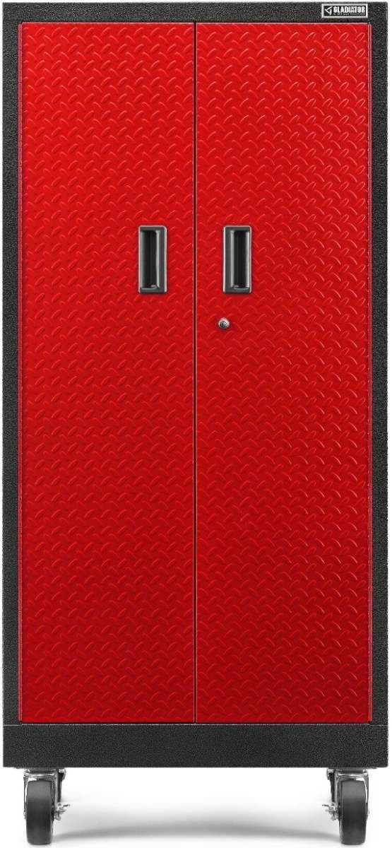 This storage cabinet stands at over five feet (152.4 cm) tall and provides a partition down its middle, allowing four half-width shelves to be adjusted to accommodate various tall items such as golf clubs, lawn tools and tents.Read More