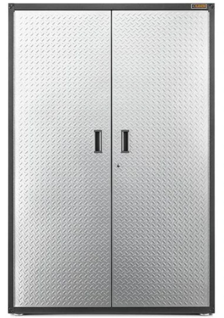 At six-feet tall, 4-feet wide and one-and-a-half feet deep, the Ready-to-Assemble Extra Large GearBox accommodates supplies of various sizes. Store four levels of gardening tools, paint supplies or automotive gear in this sturdy storage cabinet. The design makes assembly fast and easy, while an optional Wall Bracket Kit lets you get the cabinet off the floor using Gladiator® Wall Systems. Not compatible with caster kit.