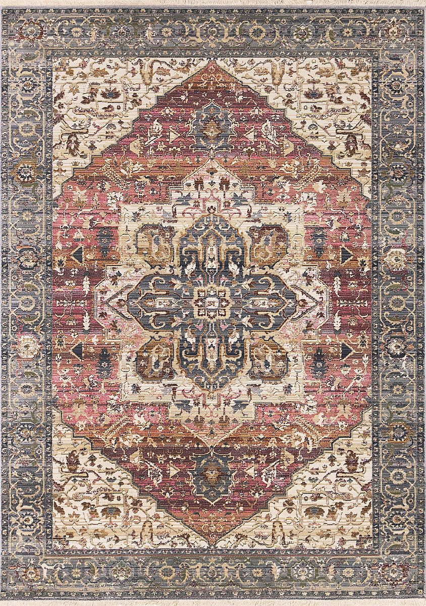 Blue and pink, red and orange; these colors and more harmonize the ornate patterns of the designs in the Serene rug collection. Cream and beige work as background colors and form a short and fashionable fringe on either end of the rug. Underfoot is a dense, plush pile that feels soft and springy.Read More