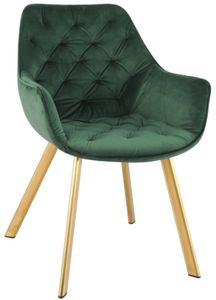 Effortless elegance with an opulent velvet finish gives the Ayami dining chair collection its signature style. Standing atop sturdy metal angled legs with a gleaming gold finish, this dining arm chair's profile has a distinctive Mid-Century Modern flair that partners well with its lush green velvet upholstery for a look that epitomizes retro luxury.Read More