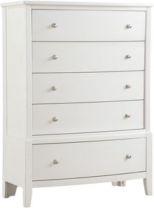 With transitional styling that is at home in a number of decorative environments, the Cotterill Collection will be a versatile addition to your bedroom. White finish over birch veneer, dramatically enhance the wood grain and is perfectly accented by the nickel hardware that punctuates each drawer front. Depending on your finish choice the headboard will feature either a white, gray or black bi-cast vinyl insert with x-stitching and button-tufting.Read More