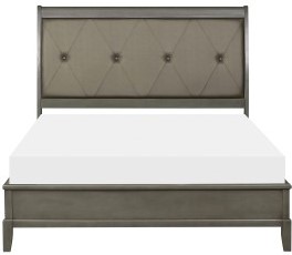 The gray finish, over birch veneer, dramatically enhances the wood’s grain and is perfectly accented by the gray faux leather insert with x-stitching and button-tufting that fronts the Full headboard.Read More