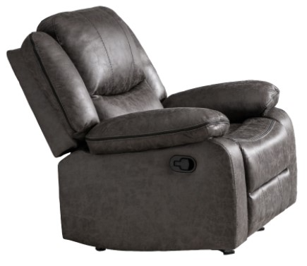 With the look of aged leather but the soft hand feel of velvety fabric, you get the best of both worlds in the Everett rocker recliner. Neutral grey polished microfiber with black piping and contrast stitch detailing ensures the Everett looks fantastic in a myriad of décor settings.Read More