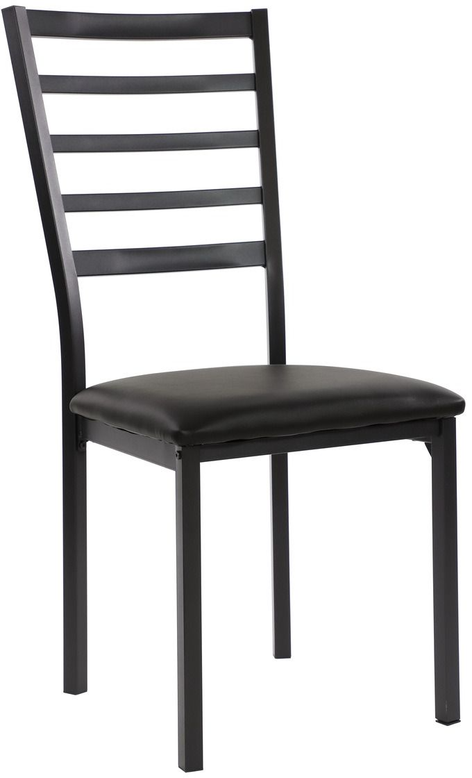 With a scale appropriate for any number of smaller dining spaces, the Flannery Collection will provide the look and style you want in your home. The transitional feel of the group comes from the richly hued faux marble table top and the minimalistic design of the metal ladder-backed chairs that feature dark brown bi-cast vinyl seats. The table and chairs are constructed of metal in black finish.Read More