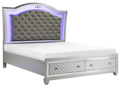The Leesa Collection offers a bold visual presentation for glamorous design aspirations. The Eastern King bed showcases diamond pattern drawer fronts and hardware, with mirrored framing on the storage footboard. LED backlighting on the headboard adds illumination, while the silver faux leather upholstered panel with button tufting lends classic accent to the collection's look.Read More