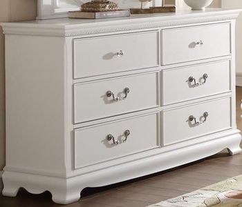 Classic traditional styling creates an elegant addition to your home in the Lucida Collection. Bead molding, shell motif, and a round mirror in traditional framing provide classic accent to the bedroom group. The twin and full bed options provide a flexible option to fit your space. The collection is offered in white and cherry finish.Read More