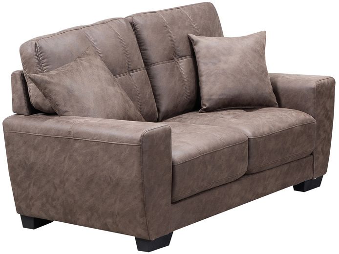 A plush design with a rounded profile is the hallmark of the Misha loveseat. With the sophisticated look of brown textured leather, polished microfibre upholstery deceives the eye until you snuggle in and realize the ultra-comfortable fabric has a soft hand feel that is as cozy as can be.Read More