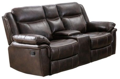 Bring function and flair to your transitional living room with the suave charm of the Peabody reclining sofa collection. Wrapped in rich brown leather gel, the console loveseat's supple upholstery feels delightfully pliant and smooth against the skin.Read More