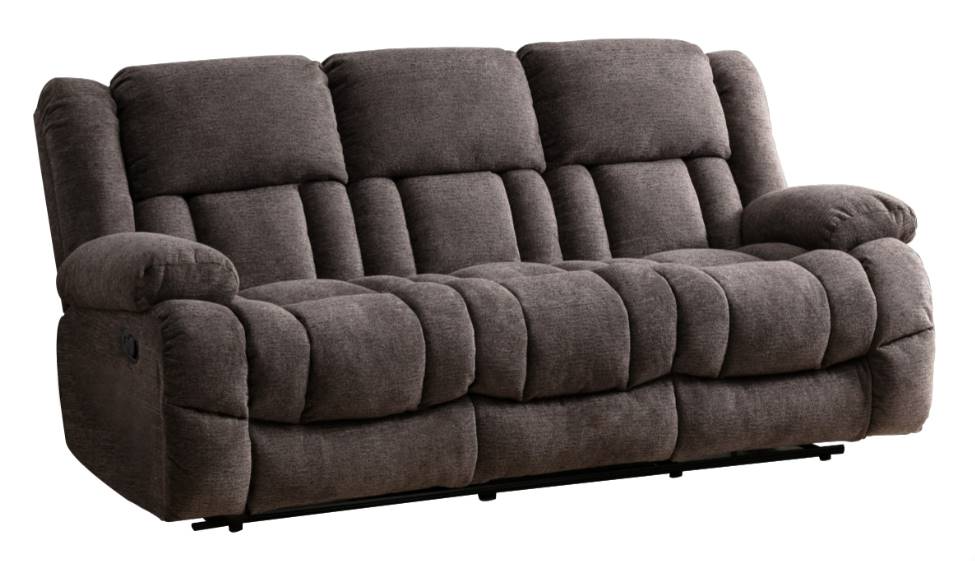 Introducing the Presley reclining collection, your haven of comfort. Draped in soft grey chenille fabric, the sofa features plush cushions and pillow armrests for total relaxation. Double tab-pull latches enable reclining, while dense foam padding and coil seat construction ensure enduring comfort.Read More