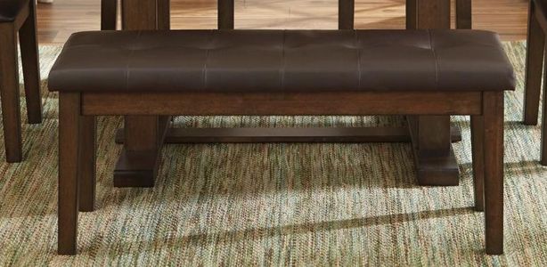 Styled for the transitional home, the Wieland Collection creates a classic profile for your casual dining area. The trestle base of the table paired with the mindy veneer, light rustic brown finish and dark brown bi-cast vinyl seats create at table that is stylistically perfect for your environment. Furthering the design is the butterfly leaf that conveniently stores beneath the table’s top. The side chairs and available bench feature padded dark brown bi-cast vinyl seats.Read More