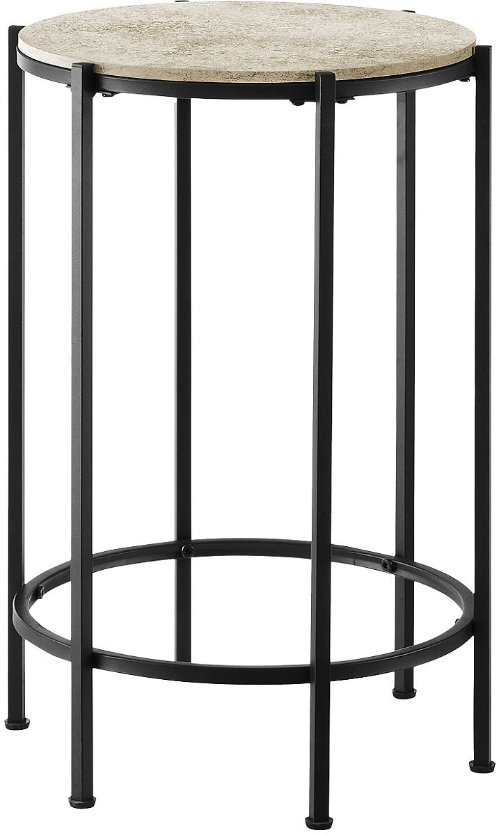 The perfect combination of style and functionality, this sleek and modern accent table brings fashionable style with a chic, cream stone laminate finish on the round table top and black metal legs.Read More