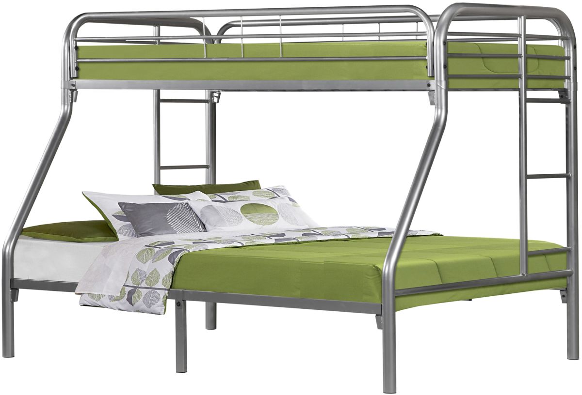 The fun space saving design of this silver metal twin/full bunk bed will make a wonderful addition to your child's bedroom. Bottom bunk is a full sized bed with twin size bed for the top bunk.Read More