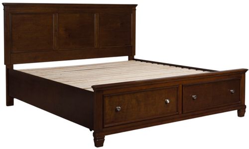 The casual design of this twin panel storage bed introduces a time-honored look to your restful retreat. Adding function to form, a storage drawer offers extra-deep space for neatly tucking away larger bedroom essentials. Whether your personal aesthetic is modern farmhouse or American classic, this chic bed adds a warm, rich presence that's always right at home.Read More