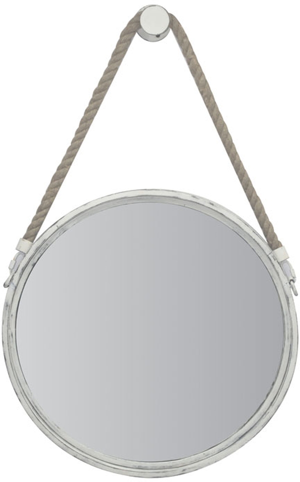 From the Dusan's collection. Antique White accent mirror. Casual design, a round shape and with a rope attached for easy hanging.Read More