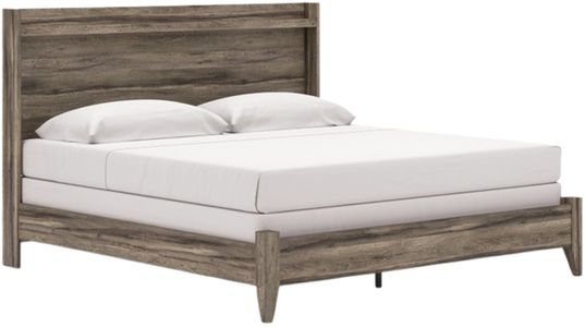Rest in the casually cool style of this king panel bed. A weathered brown finish and chill LED lighting create an easygoing vibe, setting the scene in your restful retreat. The bed's clean-lined design provides a fuss-free look.Read More