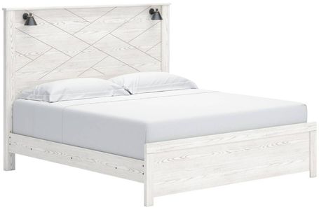 Cool, clean and casually modern. This king panel bed’s white rustic finish sets the tone for your calming sanctuary. Matte black sconce lights and an abstract design on the headboard bring a fresh look to the bed’s simply stunning profile.Read More