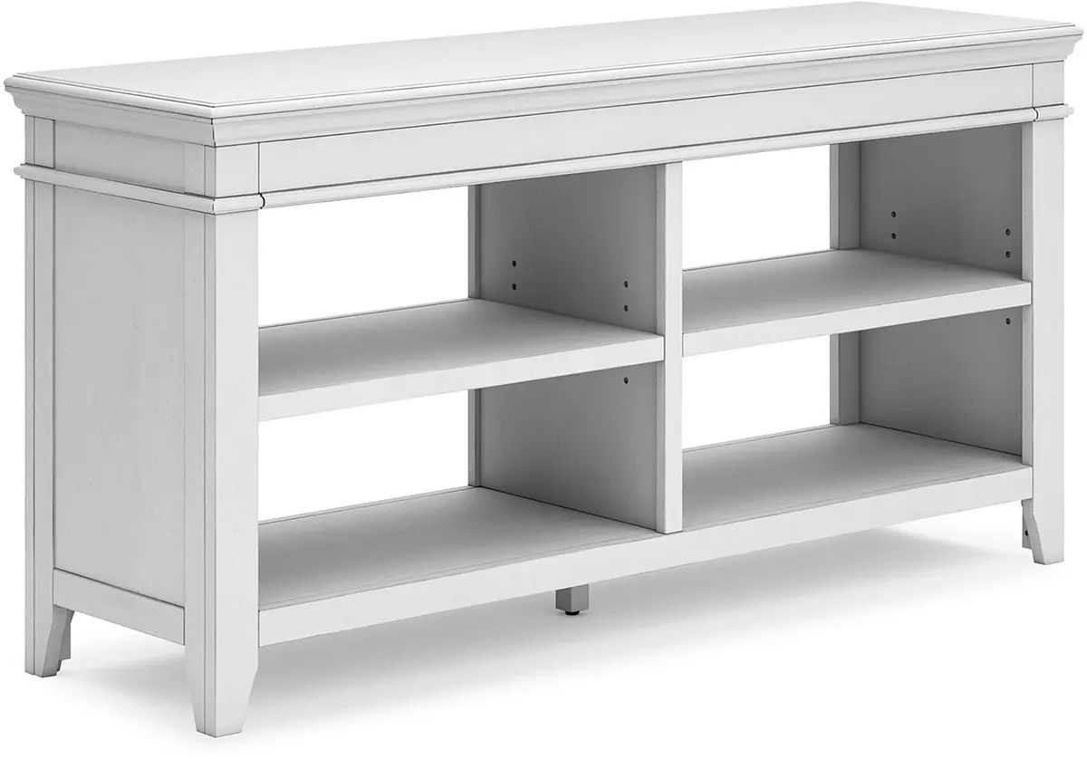 Make a style statement with this home office credenza. Its traditional design is updated with an on trend distressed whitewash finish. The credenza's open storage and adjustable shelving add up to a well-organized workspace.Read More