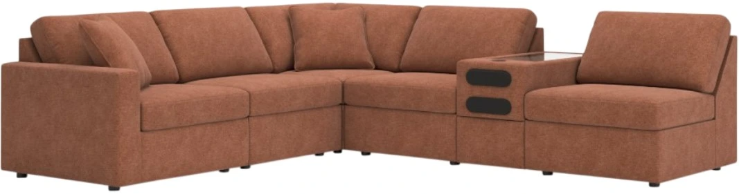 | Sectional Features | Throw Pillows Included, Console w/Storage, USB Ports, Built-in Sound System, Stain Resistant |