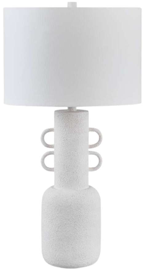 Brighten up your space with the handcrafted artisanal feel of this table lamp. A distressed white finish gives it an any-room neutrality, while the sculptural design elevates the look. Its casually chic approach to style is well-suited to vibes from modern farmhouse to coastal.Read More