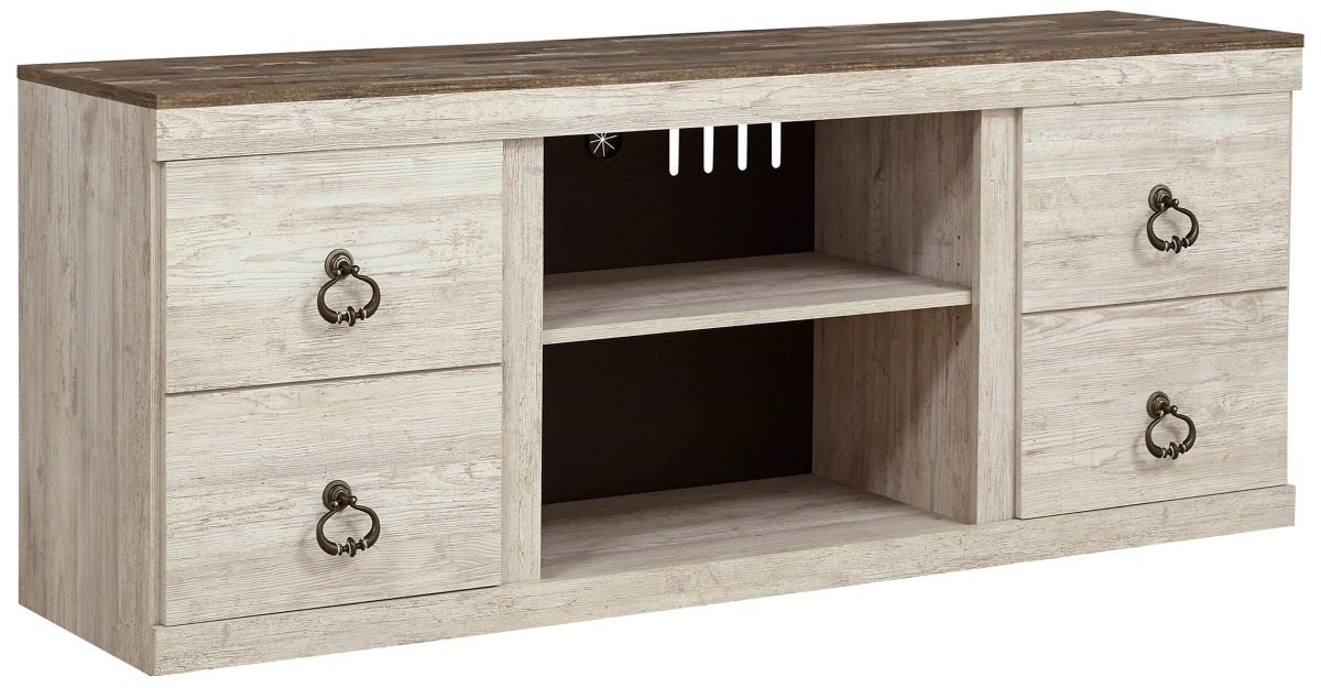 This TV stand is the ultimate statement piece for your coastal cottage or shabby chic inspired retreat. Its whitewash finish is wonderfully easy on the eyes. Paired with the unique plank-style top, it's a driftwoody look that has our minds drifting away to beachy-keen escapes.Read More